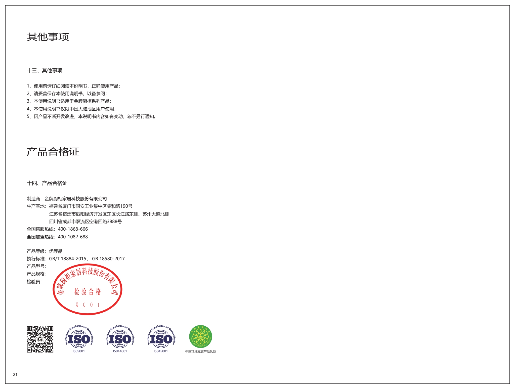 金牌厨柜使用说明书